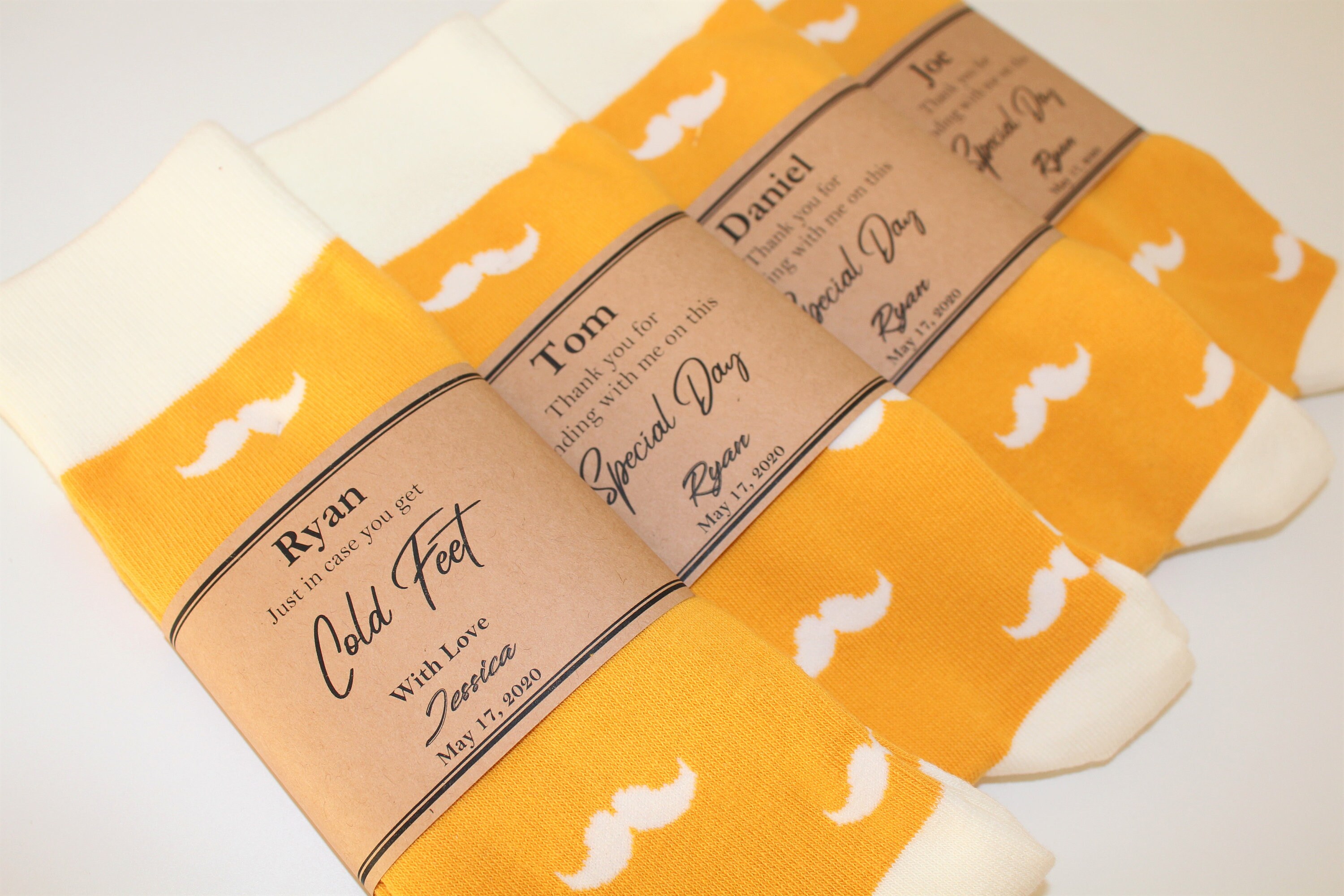 17 Fun Groomsmen Socks & Wedding Socks for the Groom Feel free to really go above and beyond when it comes to custom groomsmen socks and groom socks. We're obsessed with the idea of putting your (or each groomsman's) pet on the accessories. Send Divvyup Socks a photo and they'll do the rest! $24 per pair | Etsy 14. Face Wedding Socks Groomsman Gifts That Aren't Flasks or Knives - InsideHook Lavish items like champagne flutes, relaxing candles, a bottle of Prosecco or wine, a delicate piece of jewelry or a monogrammed makeup bag typically make up bridesmaid boxes. As for groomsmen, well, they get one of two options: a personalized flask or a personalized pocket knife. The prevalence of these two specific items as groomsmen gifts is ... Groomsman Gift Box Set | No Cold Feet - Groovy Groomsmen Gifts Free Shipping on Orders Over $75 Free Personalization on This Item Get your groomsmen's feet looking the part with a little flare. These socks with a custom label will hit just the right note with your guys. Let them show a little personality without looking cheesy. The custom label is included with your order.