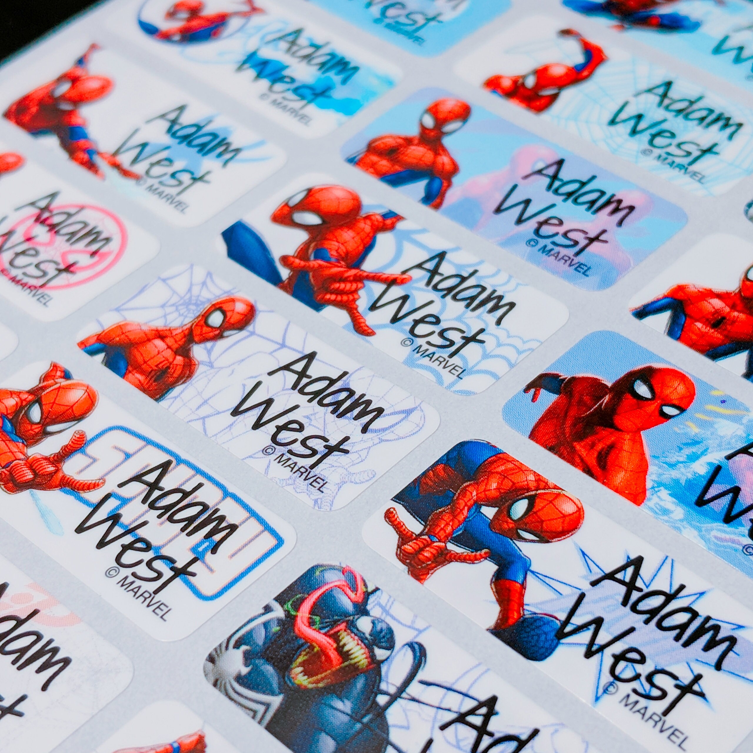 Kids Name Labels | Daycare Labels | Stickers For School Supplies Name labels are printed on thick vinyl material with a high gloss finish and permanent adhesive. School & Daycare Name Labels come in a standard rectangle shape that's 3" wide by 1" high or in a variety of die cut shapes. Personalized cute name labels are a fun way to customize your kid's food containers, clothes, bottles, bags, & more.